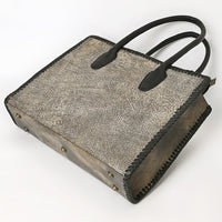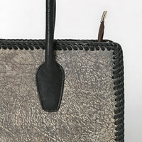 ADBGM604 Distressed Silver Metallic Leather Western Tote Bag with Black Braided Trim