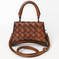Compact in size, bold in detail — this Western mini handbag is a must-have statement piece. Handcrafted from genuine full-grain leather, the rich saddle tan surface is finished with a diamond quilted pattern and subtle texture that gives it a premium, timeless look.