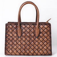 ADBGM696 Western Handbag - Quilted Genuine Leather Structured Tote with Whipstitch Trim