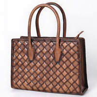 Where timeless Western charm meets everyday functionality — this structured handbag is crafted from premium full-grain leather with a striking quilted diamond pattern. The deep tan finish is accented with hand-laced whipstitch trim, creating a beautiful fusion of rugged craftsmanship and refined design.