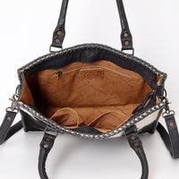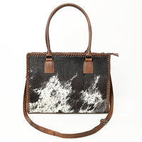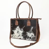 ADBGS118 Western Cowhide Tote -Hair-On Leather Bag with Braided Whipstitch & Strap