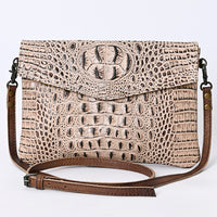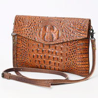 ADBGS178 Crocodile Embossed Genuine Leather Crossbody Envelope - Western Style