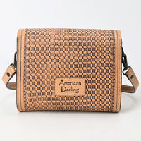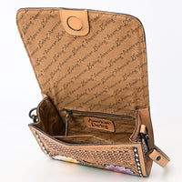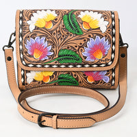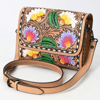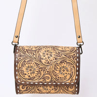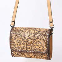 ADBGZ693 Hand-Tooled Leather Western Crossbody Bag - Floral Carving in Natural Tan