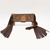 ADBGZ717 Clear Bag Fringe Crossbody with Tooled Leather Horse Design - Stadium Approved