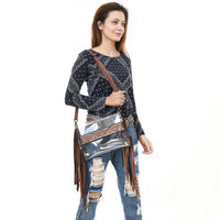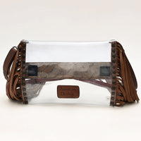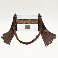 ADBGZ718 Western Clear Fringe Crossbody Bag with Tooled Leather Accent - Stadium Approved