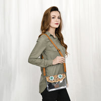 ADBGZ720 Clear Western Crossbody Bag with Turquoise Floral Tooled Leather Flap - Stadium Compliant