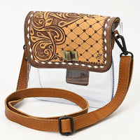 ADBGZ722 Clear Crossbody Bag with Quilted Tooled Leather Flap - Western Stadium-Approved Purse