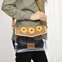 ADBGZ723 Clear Western Crossbody Bag with Turquoise Floral Tooled Leather Flap - Stadium Compliant