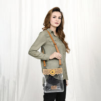 ADBGZ725 Clear Crossbody Bag with Sunflower Tooled Leather Flap - Western Stadium-Approved Purse