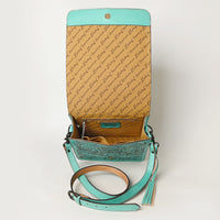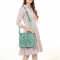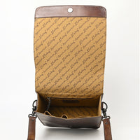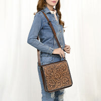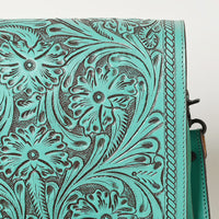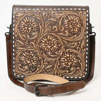 ADBGZ753 Square Hand Tooled Leather Crossbody Bag - Western Floral White Whipstitch Trim