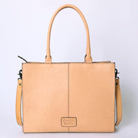 ADBGZ762A Slim Western Tote - Hand Tooled Tan Leather Bag with Panel Design