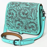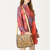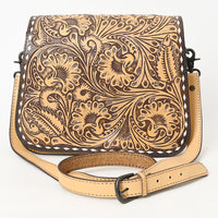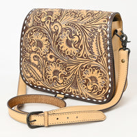 ADBGZ780 Natural Tooled Leather Crossbody Bag - Western Floral Flap Shoulder Purse