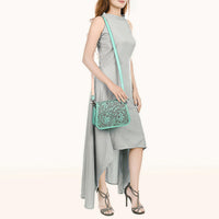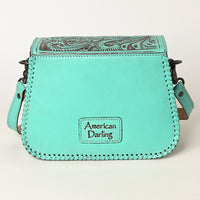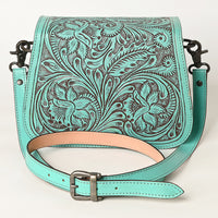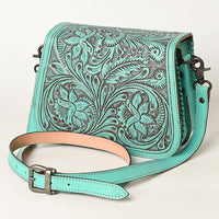 ADBGZ781 Turquoise Tooled Leather Crossbody Bag - Floral Handcrafted Western Purse