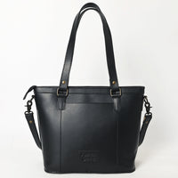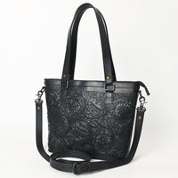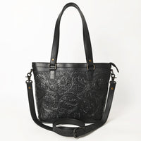 ADBGZ783A Hand-Tooled Black Leather Tote Bag - Western Floral Design with Detachable Strap