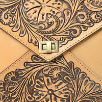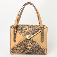 ADBGZ785 Envelope-Style Hand-Tooled Tan Leather Tote bag - Western Floral Design