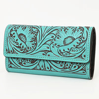 ADBGZ788 Hand-Tooled Leather Long Wallet - Western Floral Design