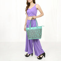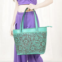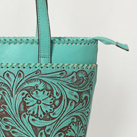 ADBGZ789 Hand-Tooled Leather Tote Bag - Western Floral Design