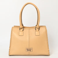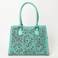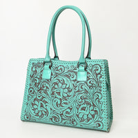 ADBGZ793 Hand-Tooled Western Leather Tote Bag - Floral Carving with Whipstitch Edges