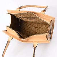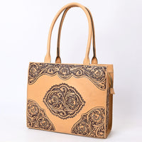 ADBGZ803 Hand-Tooled Leather Tote Bag - Western Medallion Floral Design in Natural Tan