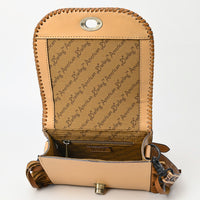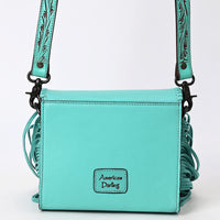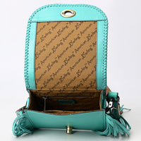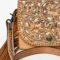 ADBGZ811 Hand-Tooled Mini Crossbody Bag - Western Floral Inlay with Fringe & Tooled Strap
