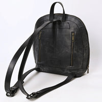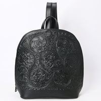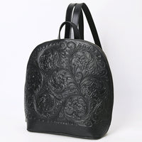 ADBGZ814 Black Hand-Tooled Leather Backpack - Western Floral Carved Daypack