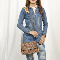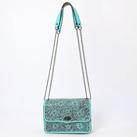 ADBGZ820 Hand-Tooled Leather Crossbody Bag with Chain Strap - Floral Western Design