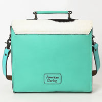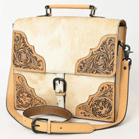 ADBGZ827 Cowhide & Hand-Tooled Leather Western Briefcase Bag - Natural Hair-On with Floral Accents
