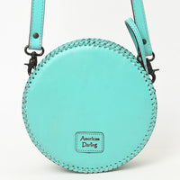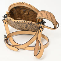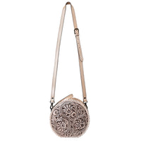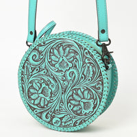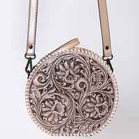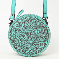 ADBGZ830 Round Hand-Tooled Leather Canteen Bag - Western Floral Circle Purse