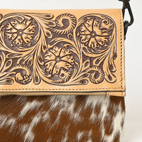 ADBGZ846 Hand-Tooled Leather & Cowhide Zip-Top Crossbody Bag - American Darling
