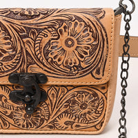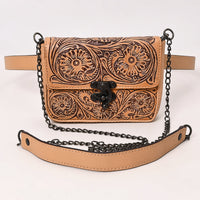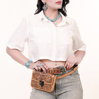 Add timeless Western charm to your everyday essentials with this convertible tan belt bag from American Darling. Hand-tooled in rich floral patterns, this versatile piece can be worn around the waist or slung crossbody thanks to its detachable chain strap. Compact yet stylish—perfect for festivals, travel, or casual days on the go.