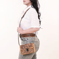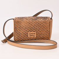 ADBGZ859 Tan Tooled Leather Crossbody Bag Western Floral Design | American Darling