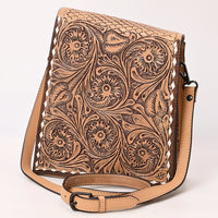 ADBGZ861 Vertical Tan Tooled Leather Crossbody Bag Western Floral | American Darling
