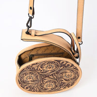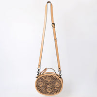 ADBGZ865 Round Tooled Leather Canteen Bag Floral Engraved Western Circle Purse | American Darling