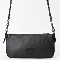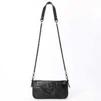 ADBGZ903A Black Hand-Tooled Genuine Leather Crossbody Bag with Chain Strap