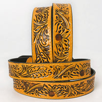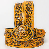 ADBL170 Hand-Tooled Yellow Floral Western Leather Belt with Oval Buckle