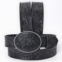 ADBL171 Hand-Tooled Black Floral Western Leather Belt with Oval Buckle