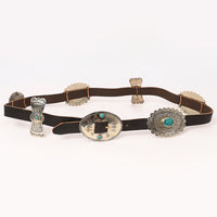 Add a touch of bold Western style to any outfit with this square cut-out concho leather belt. Featuring ornate silver-tone conchos with geometric cut-outs, this belt offers a clean, structured aesthetic that stands out while staying true to classic Western roots. Crafted from genuine dark leather and spaced with scalloped silver conchos, this piece is perfect for both fashion and function, from festivals to ranch-ready style.