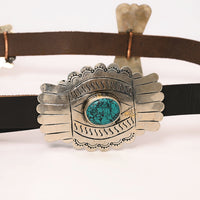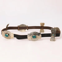 ADBLA109-51 Winged Turquoise Silver Concho Western Leather Belt