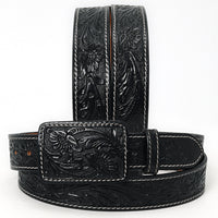 ADBLF215 Black Hand-Tooled Leather Belt with Matching Floral Buckle