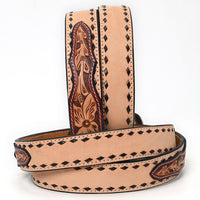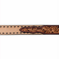 ADBLF223 Natural Tooled Leather Western Belt with Diamond Cutouts and Silver Buckle