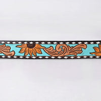 ADBLF283 Western Hand Tooled Leather Belt - Turquoise & Sunflower Floral Design