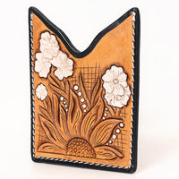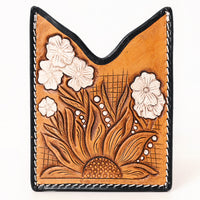 ADCCF109 Hand-Tooled Leather Card Holder - Sunflower & White Floral Detail