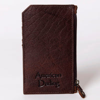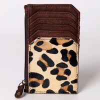 ADCCM101 Leopard Print Cowhide & Brown Leather Zipper Card Holder - Western Slim Wallet