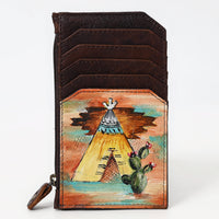ADCCM114 Hand-Painted Leather Card Holder - Teepee & Cactus Western Art