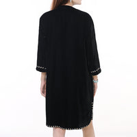 Step into classic cowgirl elegance with this stunning black velvet Western dress. Featuring intricate antique-style studs along the front, sleeves, and hemline, this dress makes a bold statement while offering luxurious comfort. Its soft texture and structured silhouette blend traditional Western charm with modern sophistication- perfect for rodeos, festivals, or stylish evenings out.