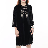 ADDR006 Women's Black Velvet Western Dress with Studded Detailing