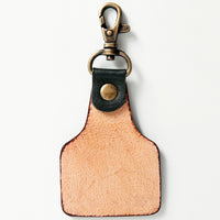 ADKR167 Tooled Leather Keyring Desert Landscape with Cactus & Cliff Design