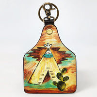 ADKRM138 Hand-Painted Tipi Leather Keyring Western Tribal Landscape Art