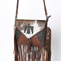 The handpicked cowhide hair-on genuine leather not only adds a soft and tactile element but also serves as an embellishment, enhancing its overall western appearance.