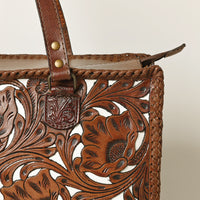 Detailed Hand tooled, carved and finally antique hand finished exquisitely done by the finest artists and craftsmen in the country. Vegetable tanned American Genuine Cowhide Leather.